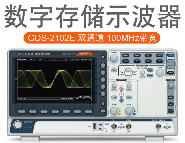 GDS-2000E系列數字存儲示波器體現了一種高價值的設計構思,包括100MHz、70MHz二種帶寬、1GSa/s采樣率、10M記錄長度、2輸入通道、超大彩色LCD顯示屏以及VPO (Visual Persistence Oscilloscope)技術,120,000wfms/s的高速更新率可以快速完成波形捕獲和處理